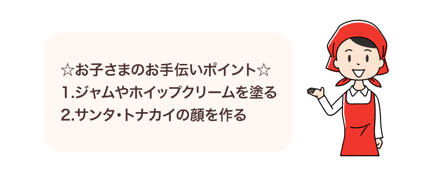 そこで今回は、クリスマスシーズンにご家庭で、お子さまと一緒に楽しんで作っていただけるレシピを、お子さまが楽しくお手伝いできるポイントのほか、準備や盛り付けのコツと合わせてご紹介します!